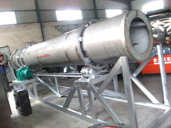 我公司開發的(飼料)啤酒糟烘干機可快速將水分含量在85%左右的濕啤酒糟(飼料)經過脫水、烘干至水分含量在10%左右的干品。啤酒糟(飼料)烘干機主要由供熱源、上料機、進料機、回轉滾筒、出料機、引風機、卸料器和配電柜構成;脫水后的濕啤酒糟(飼料)進入烘干機后,在滾筒內均布的抄板翻動下,在烘干機內均勻分散與熱空氣充分接觸,加快了烘干傳熱﹑傳質。在烘干過程中,啤酒糟(飼料)在帶有傾斜度的抄板和熱介質的作用下,至烘干機另一段星形卸料閥排出烘干成品。